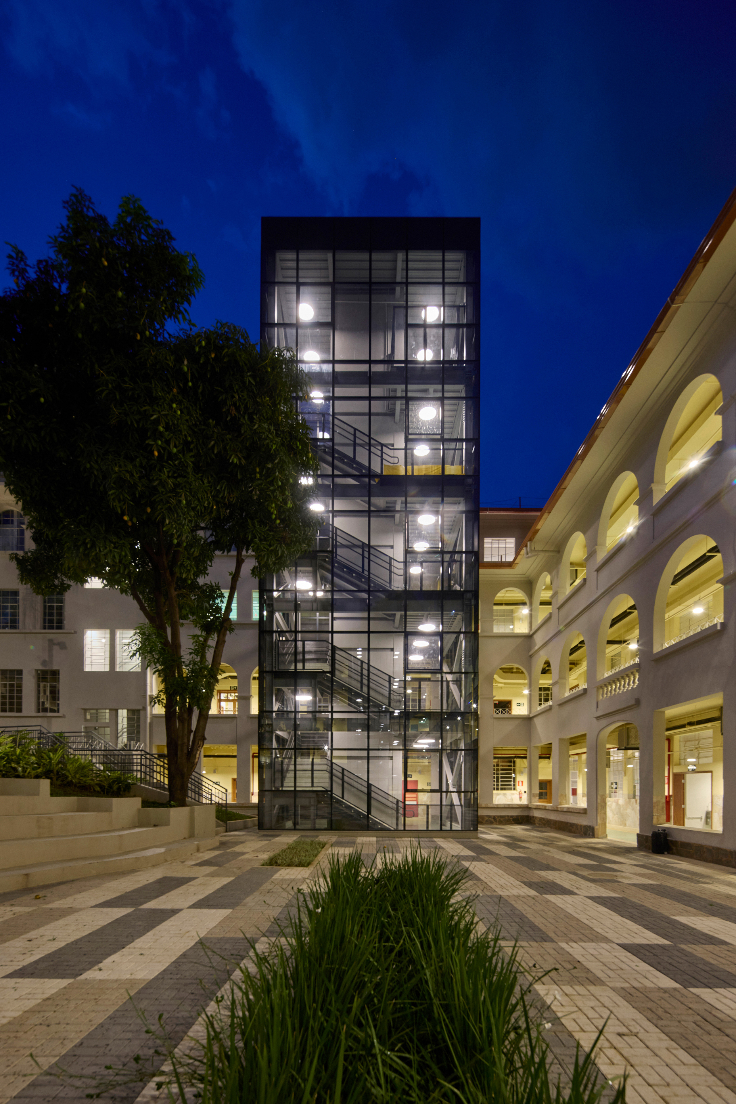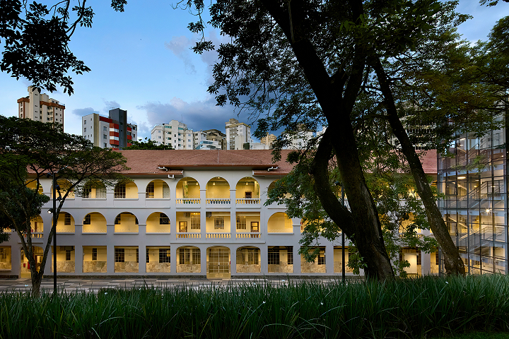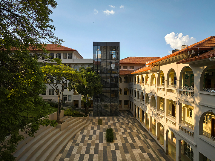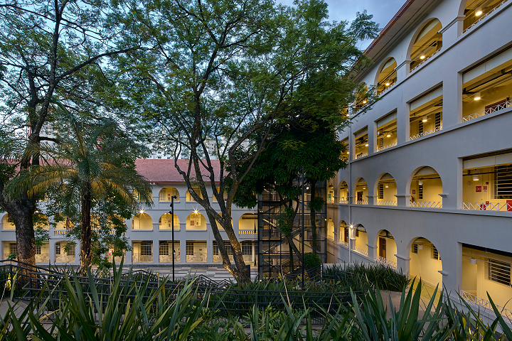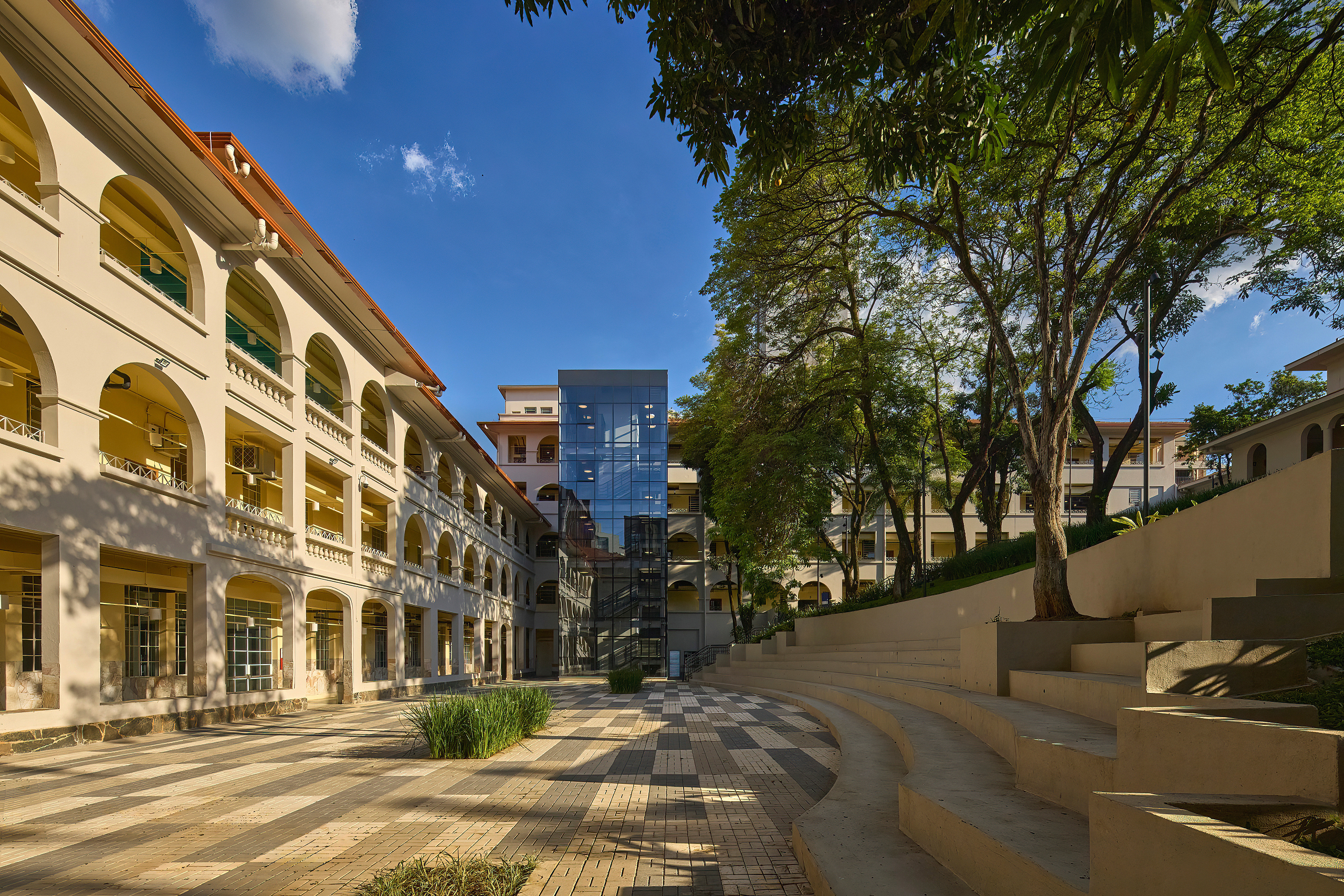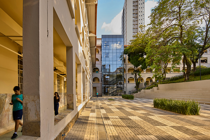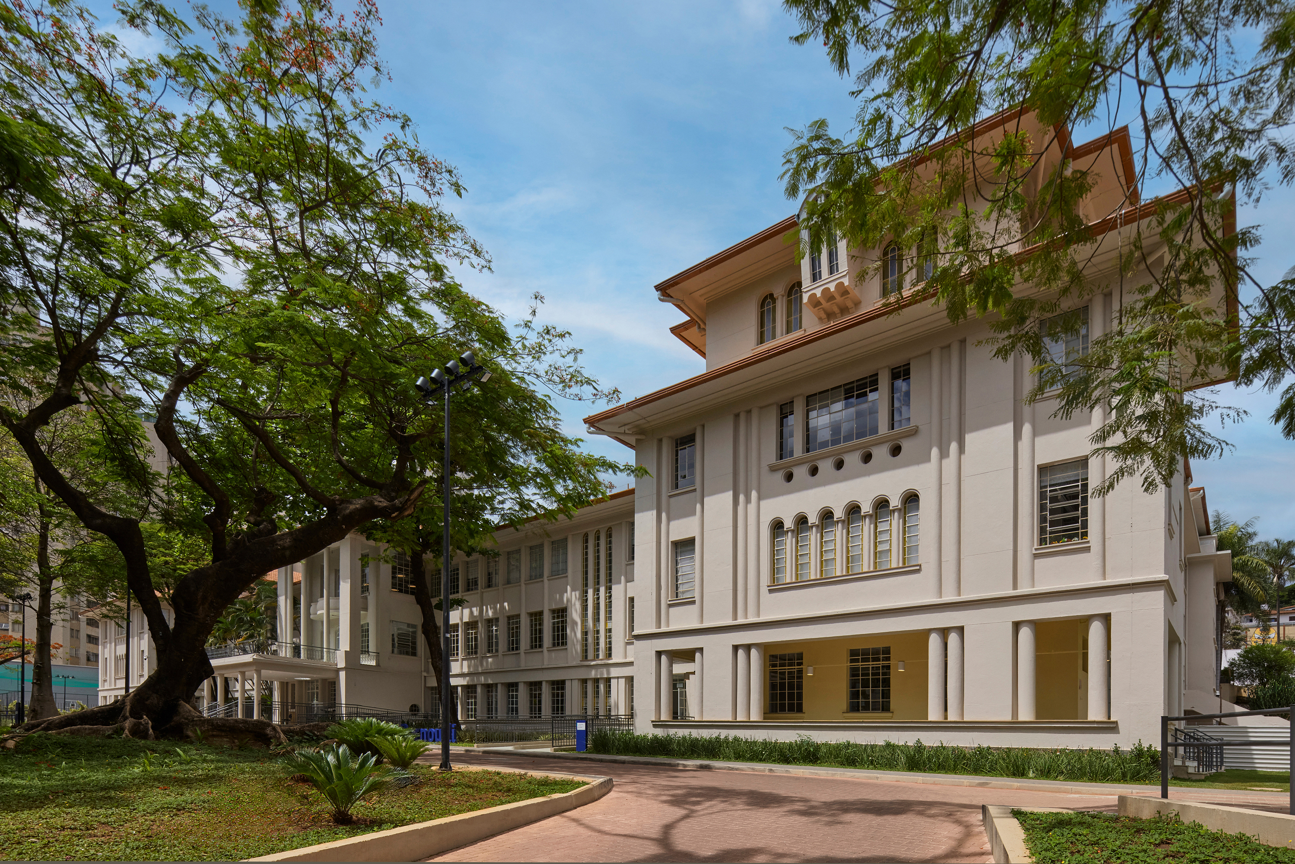 Belo Horizonte, MG, Brasil 2022-2024A nova unidade do Colégio Bernoulli, assinada pelo escritório BCMF Arquitetos, acaba de ser inaugurada no bairro Cidade Jardim em Belo Horizonte. Desta vez, em um imóvel histórico e icônico, presente há 70 anos no coração da cidade, que hoje, após 4 anos desocupado, escreve um novo capítulo na história do edifício. Construído em 1950 para abrigar o colégio Sacre Coeur de Jesus, o projeto original é de autoria do engenheiro e arquiteto Vicente Buffalo. A construção tinha capacidade de acomodar cerca de 300 alunos e contava com espaços destinados a atividades educacionais e religiosas. Em 1977, o tradicional Colégio Pitágoras assumiu o local e permaneceu em atividade até o final de 2021, seguindo presente, ainda hoje, na memória de quem o vivenciou.
