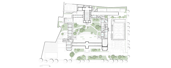 O projeto eliminou as improvisações feitas ao longo do tempo, que descaracterizaram a arquitetura original da edificação, propondo intervenções cuidadosas que reforçam as qualidades da implantação geral, arquitetura, interiores e paisagismo da edificação existente. A ampliação da instituição causou o mínimo impacto na área tombada, por meio da demolição dos anexos atuais e sua substituição por novos elementos que dialogam com a escala e materialidade do edifício existente. A nova arquitetura é claramente contemporânea e seus elementos foram inseridos de maneira sensível e harmoniosa com o caráter tradicional do Colégio, atendendo às demandas das normas vigentes – como acessibilidade, proteção contra incêndio, entre outros – e às necessidades intrínsecas a uma instituição de ensino dos dias de hoje.