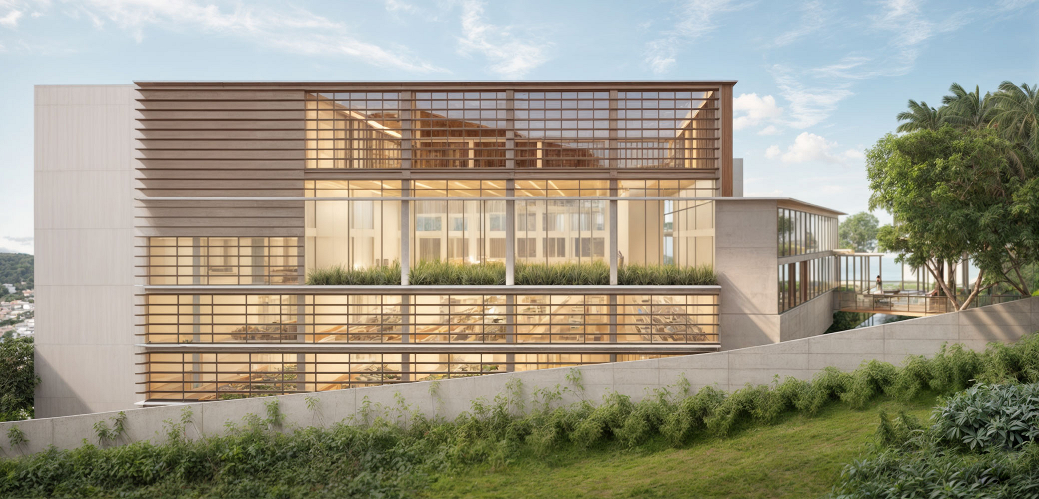 O estudo aqui apresentado segue o padrão das outras unidades “greenfield”, Bernoulli Vale do Sereno e Bernoulli Salvador, tendo superado com sucesso os desafios de resolver todo o programa e fluxos do colégio em um terreno bastante inclinado e com dimensões restritas, cercado de vizinhos em um quarteirão predominantemente residencial.