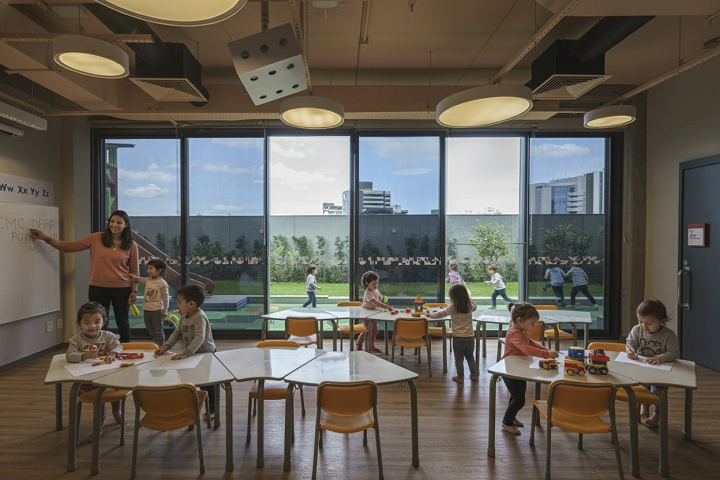 Não há dúvida que a arquitetura desempenha um papel crucial na dinâmica social dos alunos, influenciando suas interações, comunicações e a forma como se relacionam com o processo educativo. Nesse contexto, o Colégio Bernoulli exemplifica como o design pode impactar positivamente essas relações. Com unidades em Belo Horizonte, Nova Lima, Salvador e, em breve, em São Paulo, buscamos criar um repertório formal de elementos arquitetônicos que define uma identidade própria para a instituição, sendo adaptável às características específicas de cada local. Essa abordagem resulta em uma identidade coesa em termos de imagem e operação, um conceito único com pitadas de tempero local.