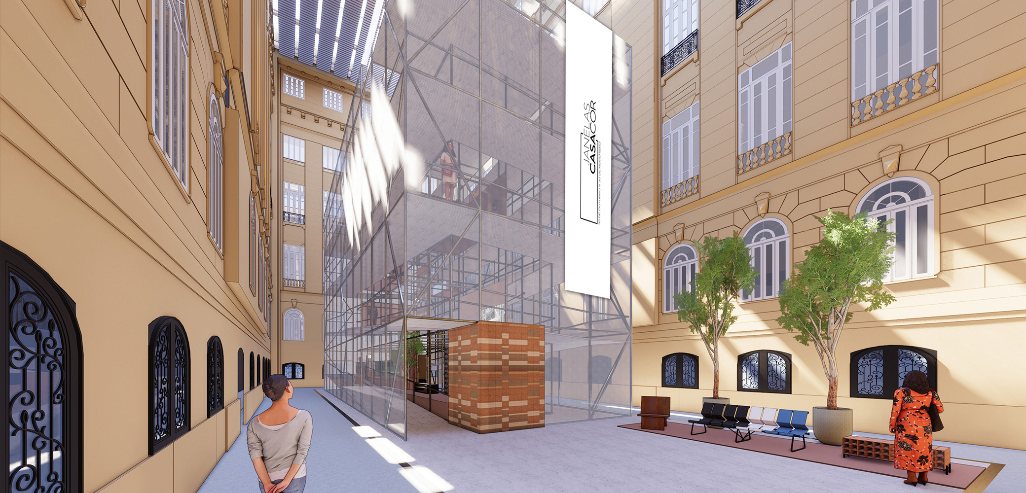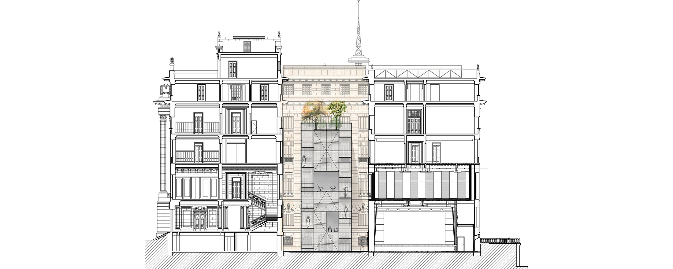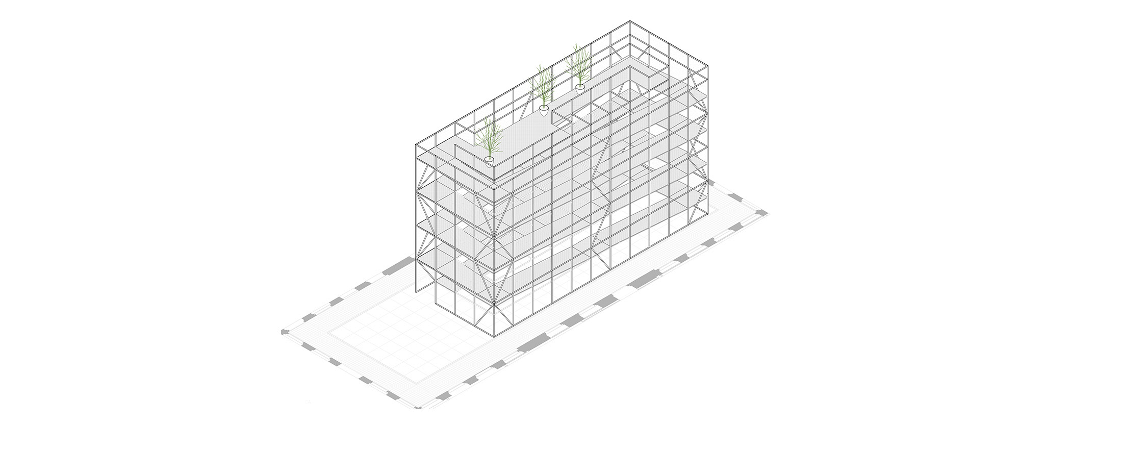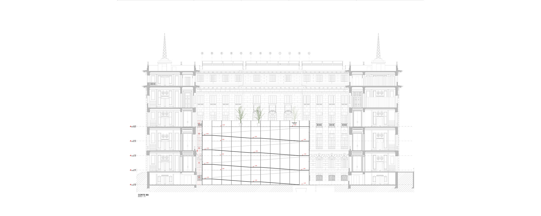 Belo Horizonte, MG, Brasil 2020O projeto se fundamenta nas propostas radicais de arquitetura de vanguarda das décadas de 1950 e 1960 — notadamente as visões de Yona Friedman, Cedric Price e Buckminster Fuller — que idealizavam soluções de velocidade, leveza e flexibilidade como resposta aos desafios urbanos e sociais. Em um cenário global cada vez mais volátil, esses conceitos se mostram cruciais para a arquitetura contemporânea. Neste contexto, propomos a inserção de um pavilhão no vazio central do edifício histórico do CCBB. A estrutura atua como um dispositivo espacial dinâmico, concebido para gerar experiências inesperadas e visadas surpreendentes do pátio interno. O ponto culminante da ascensão é uma praça suspensa que se abre totalmente, integrando a cobertura zenital e, metaforicamente, trazendo o céu para dentro do coração do CCBB.