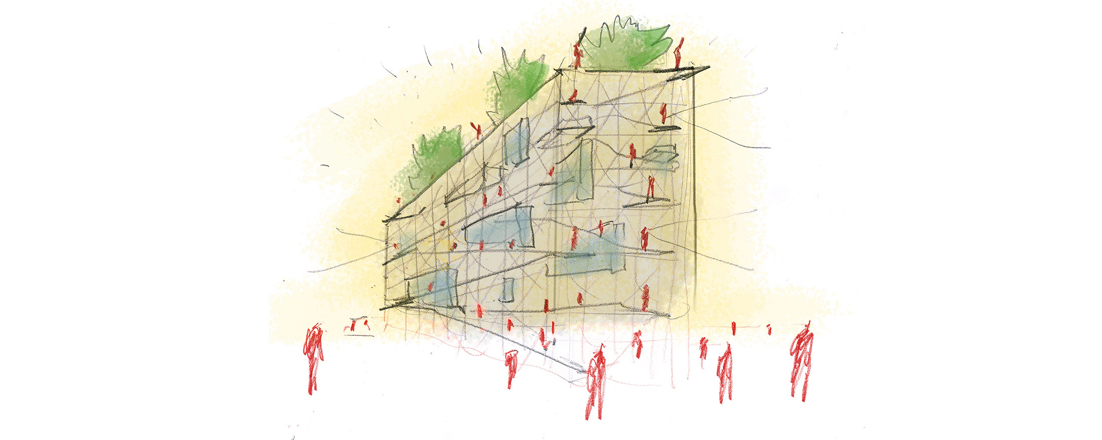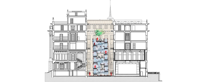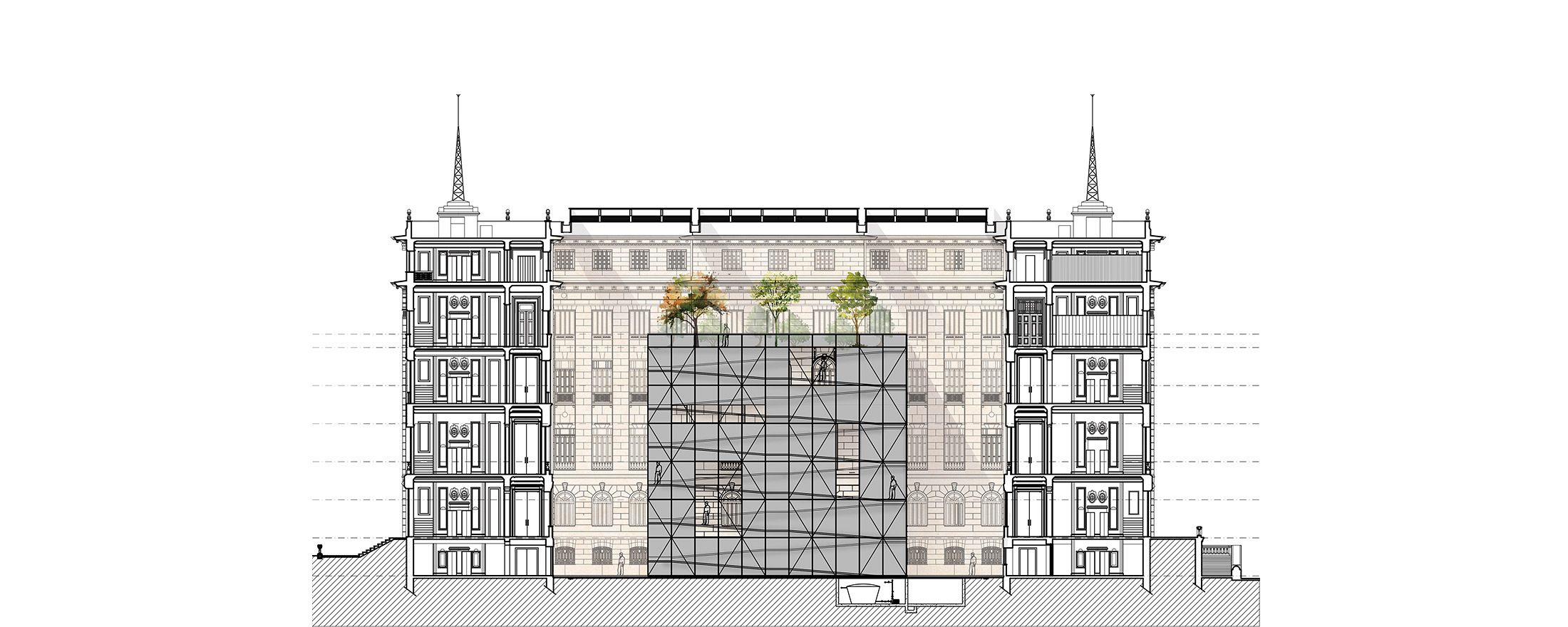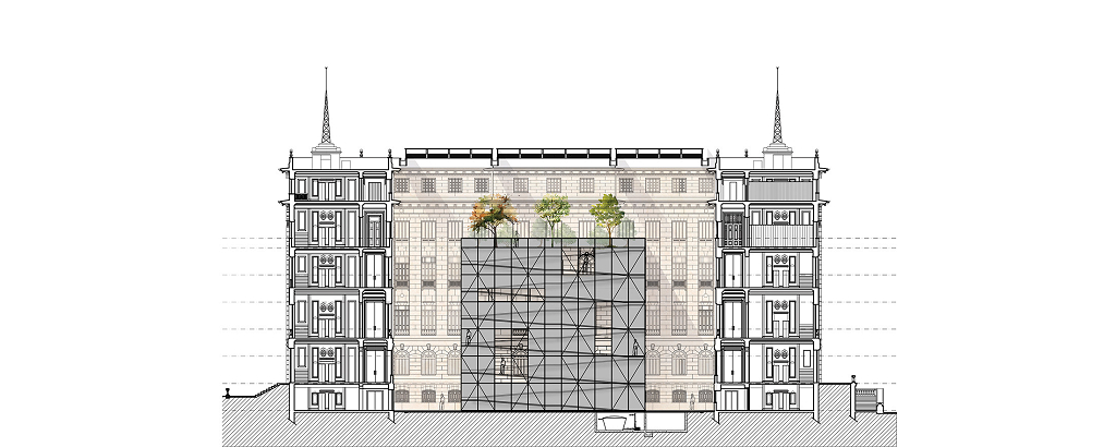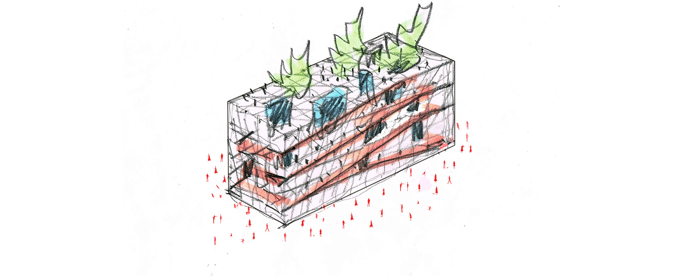 Belo Horizonte, MG, Brasil 2020O projeto se fundamenta nas propostas radicais de arquitetura de vanguarda das décadas de 1950 e 1960 — notadamente as visões de Yona Friedman, Cedric Price e Buckminster Fuller — que idealizavam soluções de velocidade, leveza e flexibilidade como resposta aos desafios urbanos e sociais. Em um cenário global cada vez mais volátil, esses conceitos se mostram cruciais para a arquitetura contemporânea. Neste contexto, propomos a inserção de um pavilhão no vazio central do edifício histórico do CCBB. A estrutura atua como um dispositivo espacial dinâmico, concebido para gerar experiências inesperadas e visadas surpreendentes do pátio interno. O ponto culminante da ascensão é uma praça suspensa que se abre totalmente, integrando a cobertura zenital e, metaforicamente, trazendo o céu para dentro do coração do CCBB.