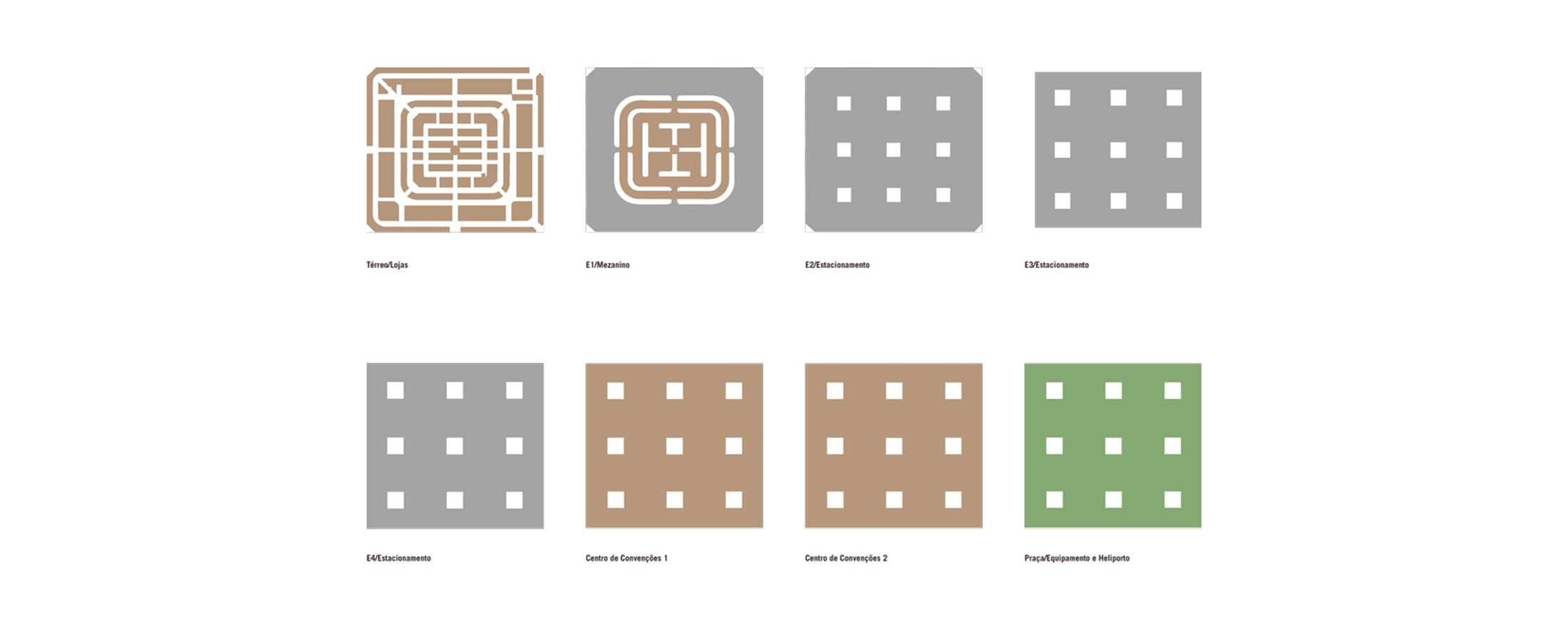 Em nossa proposta, resultado do trabalho conjunto de 3 escritórios consorciados, buscamos uma contribuição para a cidade que estivesse além das vantagens privadas obtidas com o programa previsto (espaços administrativos, centro de convenções e, principalmente, mais estacionamentos).