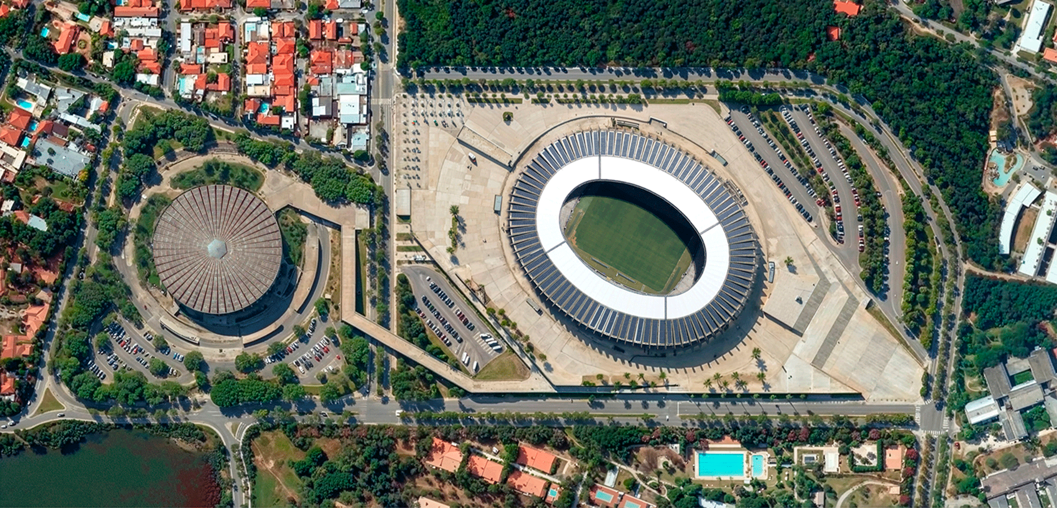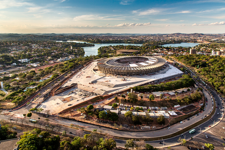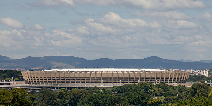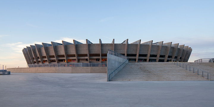 O Mineirão foi inaugurado em 1965 como o segundo maior estádio de futebol do mundo, com capacidade final para cerca de 130 mil pessoas. Com sua ritmada estrutura de concreto armado e volumetria monumental, projeto de Eduardo Mendes Guimarães Júnior e Gaspar Garreto, tornou-se um ícone na paisagem. Hoje, a Lagoa da Pampulha, os edifícios de Niemeyer e a estrutura do Mineirão são tombados.