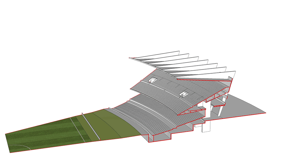A extensão da cobertura teve sua solução completamente redefinida. A equipe da Engeserj, responsável pelo projeto estrutural, baseou-se em estudos da UFMG sobre a estrutura de concreto do Mineirão e concluiu que seu esqueleto robusto e resistente poderia — e deveria — participar ativamente do novo sistema. A solução mista acompanha o ritmo dos 88 pórticos do estádio, apoiando-se neles e criando uma extensão em balanço de 26 metros.
