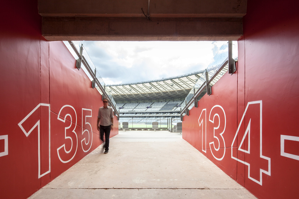 As alterações internas do estádio responderam basicamente às exigências da Fifa: acessos, segurança, capacidade, visibilidade, áreas de imprensa, instalações dos atletas e logística. O destaque foi a extensão da cobertura, fundamental para o conforto do público (proteção contra intempéries) e para a qualidade das transmissões televisivas, eliminando o efeito de penumbra. Externamente, tornou-se necessário reconfigurar o uso do terreno, antes quase totalmente destinado a estacionamentos, para qualificar os acessos, os apoios ao estádio e viabilizar a operação comercial característica do modelo de PPP.