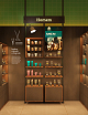 Para que a marca mãe sobressaia sobre as categorias e submarcas, é preciso que haja unidade na arquitetura, algo que a torne capaz de sintetizar uma atmosfera e projetar uma única voz. Para isso, criamos um campo superior na fachada e nas paredes do interior da loja onde o domínio da cor verde define a soberania da marca mãe sobre categorias e submarcas. Uma vez estabelecido o domínio da marca mãe, arquitetura, visual merchandising e iluminação se articulam para estabelecer condições de setorização, identidade e destaque, respectivamente, para heroes e demais submarcas. Estas categorias são percebidas e reconhecidas logo que se entra na loja, pela organização espacial, pela sinalização e pela identidade dos produtos, e estão organizadas no campo de visão do público, onde predominam o aço-carbono (cor chumbo) e a madeira.