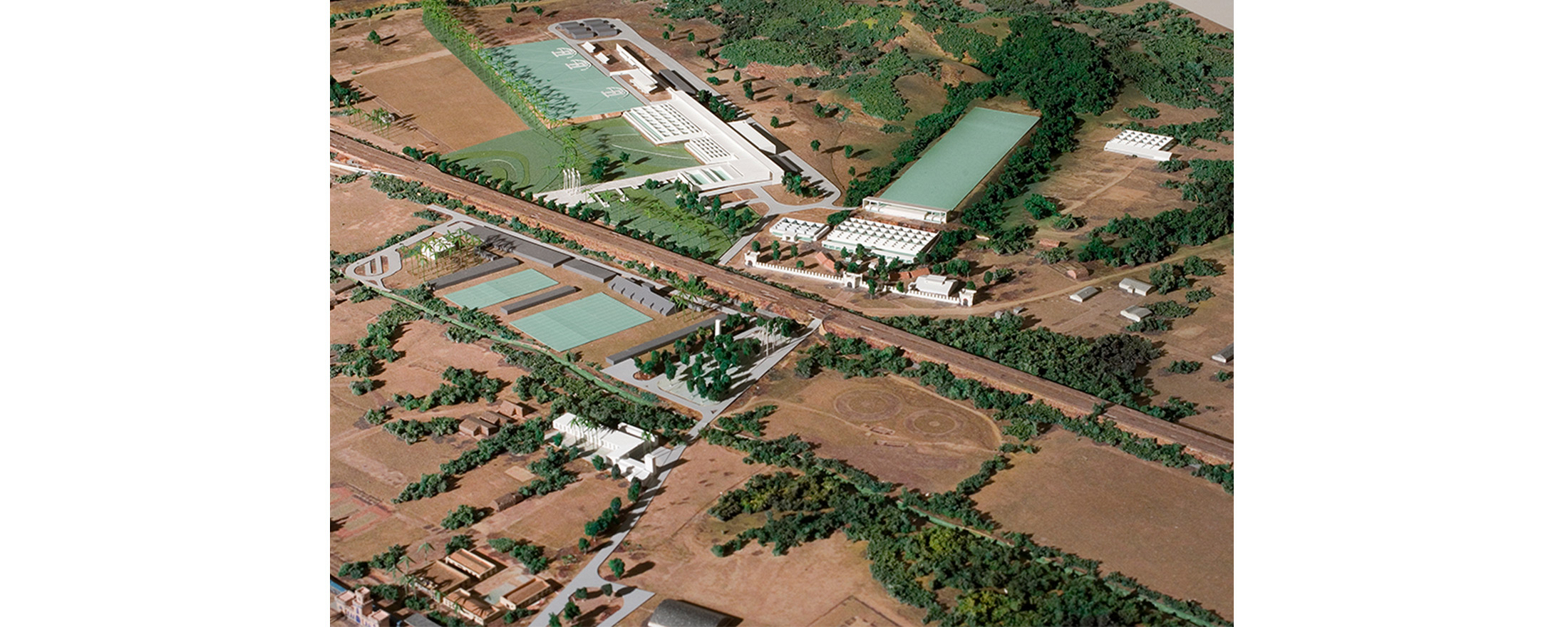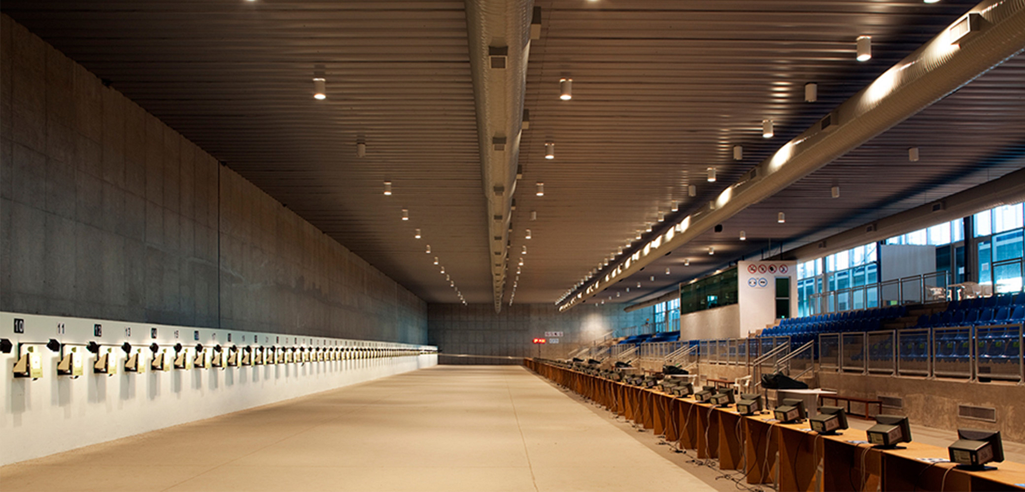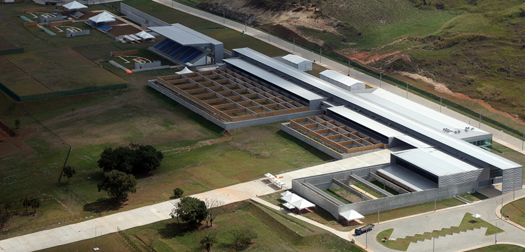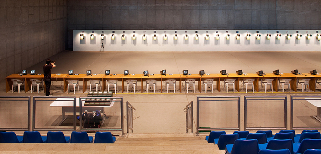 Rio de Janeiro, RJ, Brasil 2007O Complexo Esportivo da Vila Militar de Deodoro foi projetado para os Jogos Pan-Americanos de 2007, considerando, desde sua concepção, como legado, um programa para competições similares – como os Jogos Olímpicos e Paraolímpicos de 2016. Buscamos minimizar ao máximo os espaços de dupla-função (ou seja, que tivessem que ser adaptados para o evento, tendo uma utilização posterior diferente), definindo no programa de necessidades, a partir do evento, um conjunto de edificações e equipamentos definitivos que possibilitasse a organização de outras competições oficiais (campeonatos regionais, mundiais, olimpíadas, etc) bem como um uso cotidiano de fácil manutenção (clube de treinamento, escola esportiva, etc). As instalações temporárias, que teriam suas estruturas e equipamentos removidos logo após os Jogos, deveriam ser acopladas a uma rede de infraestrutura de acessos e instalações a serem projetadas em conjunto com o legado definitivo, que dessa forma continuaria preparado para receber outros eventos de porte similar no futuro. Dessa forma, o Centro Nacional de Tiro Esportivo (CTE), o Centro Nacional de Hipismo (CHI) e a piscina do Centro Nacional de Pentatlo Moderno (CPE) já atendem aos padrões de competições internacionais, e necessitarão de apenas pequenos ajustes e complementos. O projeto lida com questões complexas de um contexto suburbano único, que abrange em uma mesma região um bairro militar bem ordenado e planejado, uma aglomeração afavelada de alta densidade, uma área industrial em meio a bairros de classe média e uma vasta paisagem natural exuberante. Com suas novas instalações e melhoramento da infraestrutura , o novo Complexo Esportivo de Deodoro se tornará sem dúvida um formidável patrimônio de prática de esportes de alta-performance, estimulando o uso pela população local e com o potencial de catalisar uma revitalização geral de uma área suburbana significativa da cidade.
