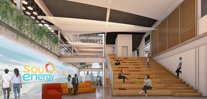 Eusébio, CE, Brasil 2022A Sou Energy é uma referência em importação e distribuição de soluções em energia solar nas regiões norte e nordeste que já conta com 12 anos de história. O projeto realizado pela BCMF Arquitetos da nova sede administrativa da empresa, transmite, a partir de sua forma e de seu conteúdo, seus ideais de inovação, sustentabilidade e eficiência, ao mesmo tempo em que deixa claro as suas origens.